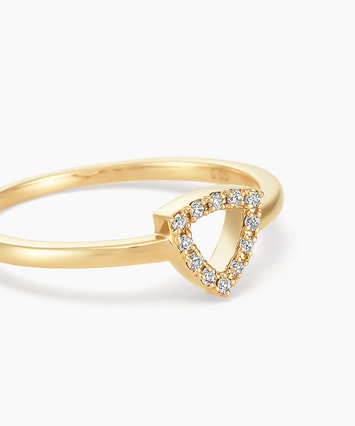 「小さな宝もの」をコンセプトにつくられた、日々にささやかに輝きを添えるシリーズ。ダイヤモンドの繊細なきらめきとほんのりフェミニンなムードが漂うデザインは、華美になりすぎずデイリーユースにもぴったり。トライアングルのフォルムはシンプルながらも他とかぶらず、一さじの個性が光ります。