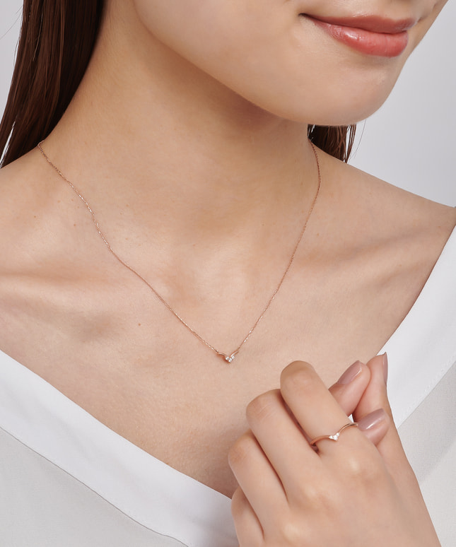 人気のバーのフォルムにひとひねり加えた、クラシカルな雰囲気を併せ持つネックレス。