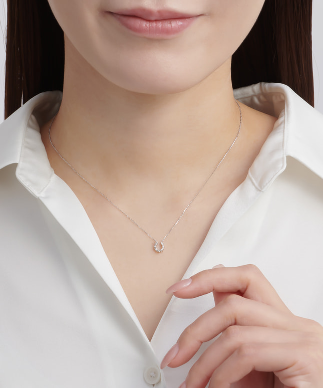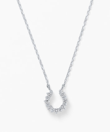 「小さな宝もの」をコンセプトにつくられた、日々にささやかな輝きを添えるシリーズ。U字になっているその形状から「幸せを受け止める」という意味合いがあるとされる馬蹄(ホースシュー)を象ったデザイン。ラッキーナンバーとして人気の高い「7」石のダイヤモンドがあしらわれ、お守りジュエリーとしてもおすすめのネックレスです。ダイヤモンド同士の間に施された地金のあしらいなど細部にこだわり、オーソドックスな中に個性が光る仕立てになっています。■同デザインのアイテムはこちら■同シリーズのアイテムはこちら■長さの調節ができるアジャスターはこちら※全国のフェスタリア系列店舗にてクリーニングやアフターメンテナンスを承ります。#ネックレス ホワイトゴールド #馬蹄モチーフ #ダイヤモンドネックレス 3万円台 #ダイヤモンドネックレス 3万円台