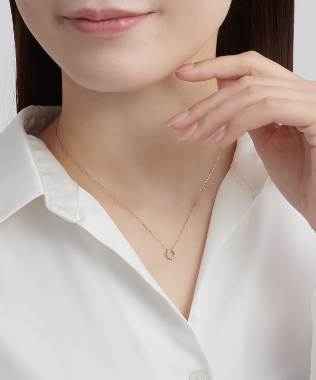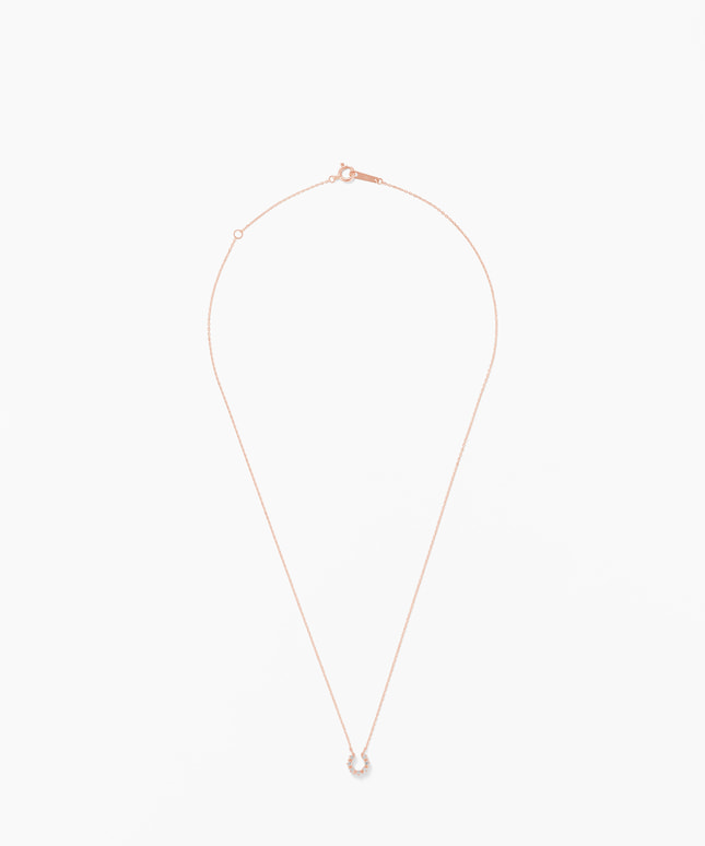 「小さな宝もの」をコンセプトにつくられた、日々にささやかな輝きを添えるシリーズ。U字になっているその形状から「幸せを受け止める」という意味合いがあるとされる馬蹄(ホースシュー)を象ったデザイン。ラッキーナンバーとして人気の高い「7」石のダイヤモンドがあしらわれ、お守りジュエリーとしてもおすすめのネックレスです。ダイヤモンド同士の間に施された地金のあしらいなど細部にこだわり、オーソドックスな中に個性が光る仕立てになっています。■同デザインのアイテムはこちら■同シリーズのアイテムはこちら■長さの調節ができるアジャスターはこちら※全国のフェスタリア系列店舗にてクリーニングやアフターメンテナンスを承ります。#ネックレス ピンクゴールド #馬蹄モチーフ #ダイヤモンドネックレス 3万円台 #ダイヤモンドネックレス 3万円台