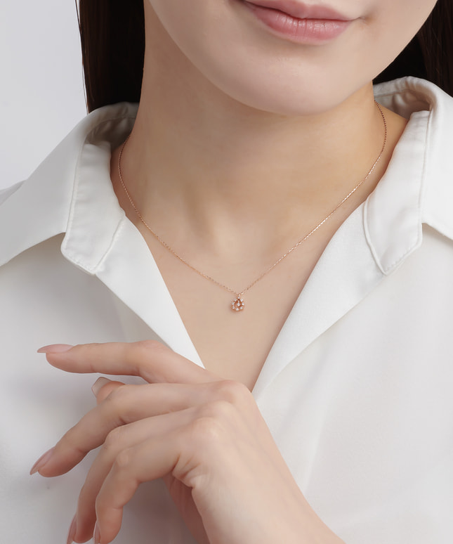 「小さな宝もの」をコンセプトにつくられた、日々にささやかな輝きを添えるシリーズ。雫は「恵み」を意味し、「癒し」や「浄化」などのポジティブな意味を多く持つ人気のモチーフ。仕草にあわせてセンターのダイヤモンドが揺れる度、雫モチーフにあしらわれたダイヤモンドの輝きとあいまって、上品にそのフォルムを際立たせます。控えめなサイズ感は華美になりすぎず、オフィスシーンにもカジュアルスタイルにもぴったりです。■同デザインのアイテムはこちら■同シリーズのアイテムはこちら■長さの調節ができるアジャスターはこちら※全国のフェスタリア系列店舗にてクリーニングやアフターメンテナンスを承ります。#ネックレス ピンクゴールド #雫モチーフ #ダイヤモンドネックレス 3万円台