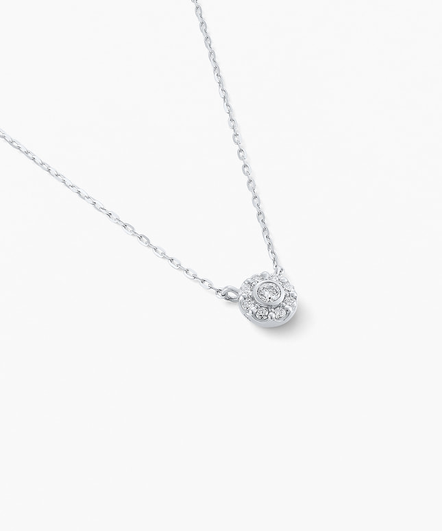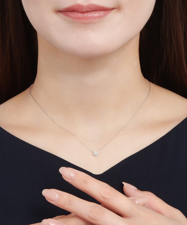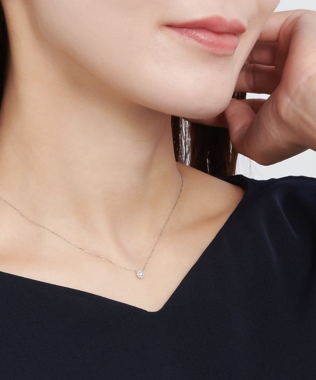 立体感のある造りはあらゆる角度からダイヤモンドの輝きを引き出し、デコルテに華を添えてくれます。