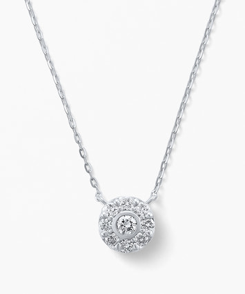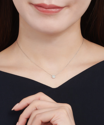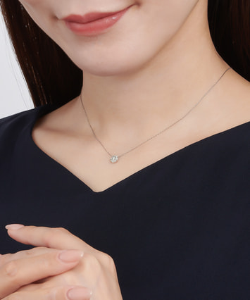 立体感のある造りはあらゆる角度からダイヤモンドの輝きを引き出し、デコルテに華を添えてくれます。