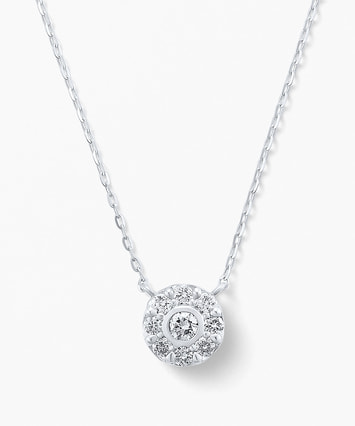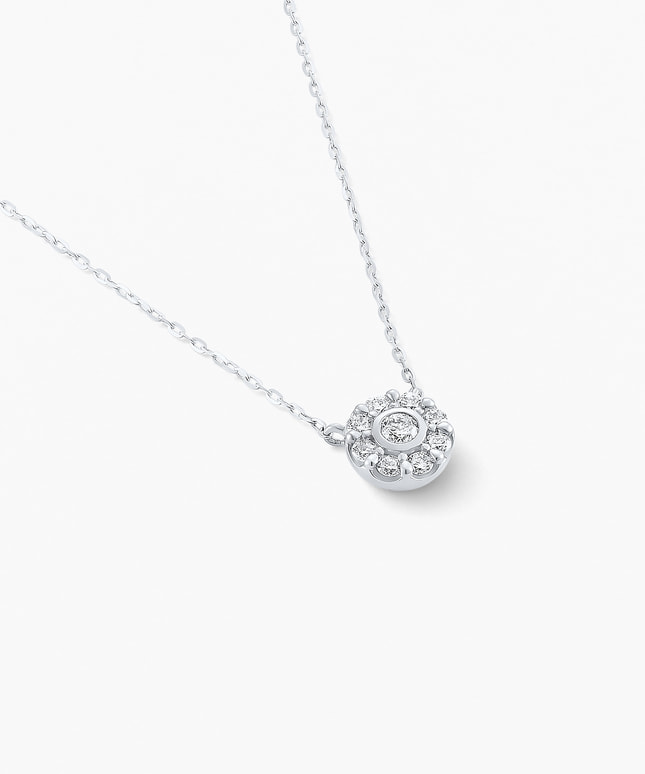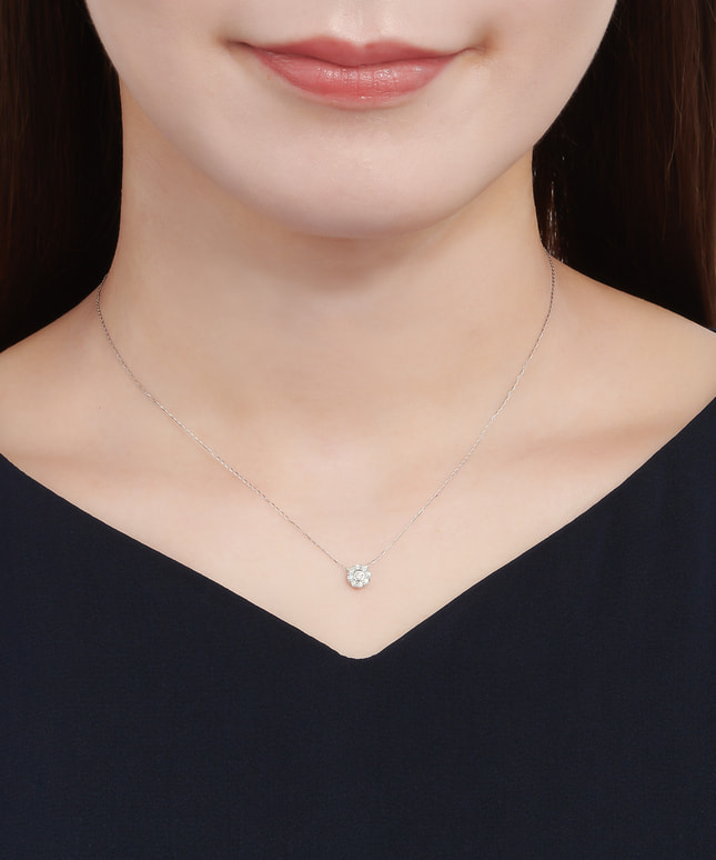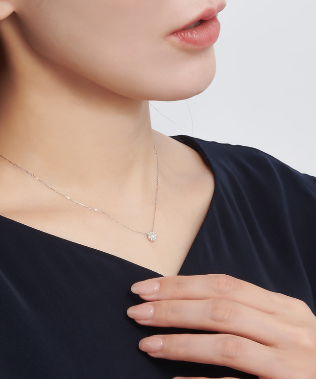 立体感のある造りはあらゆる角度からダイヤモンドの輝きを引き出し、デコルテに華を添えてくれます。