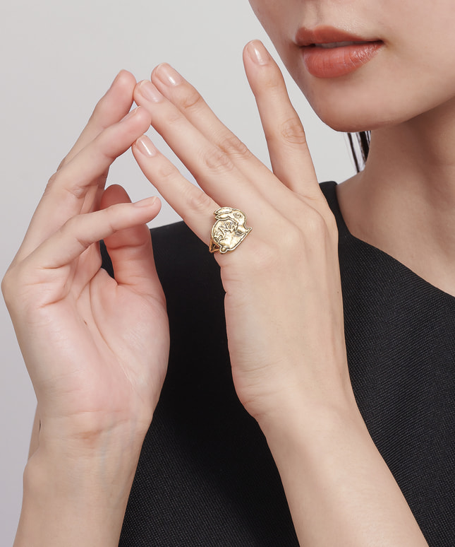 メゾンブランドのデザインやプロデュースを手掛け、パリを拠点に活躍するマルチアーティスト河原シンスケ氏とのコラボレートコレクション。古代ローマを着想源に生まれたデザインに、河原氏の作品を代表するウサギを主人公にした創作の物語が込められています。まるでコインから飛び出でてきたような小さなウサギやニンジンがモチーフになったジュエリー。コインに刻まれた絵柄をそのまま型抜きしているため、裏面のデザインも魅力。<petit usagi>の世界観とフェスタリアのクラフトマンシップがぎゅっと詰め込まれたピンキーリングです。■petit usagi SHINSUKE KAWAHARA for festariaについてはこちら※こちらの商品は専用の巾着、ショッパーをお付けしてお届けいたします。注文画面でギフトラッピングを選択いただいてもリボンは付属されませんので予めご了承ください。※古美仕上げを施しているため、1点1点風合いや仕上げ、色の濃淡が異なります。アイテムがもつ唯一無二の個性との出会いをお楽しみください。※古美仕上げのため、稀に白いお洋服に加工の色味がつく場合がございます。※時間の経過により黒ずみが気になる際は、シルバー用のクロスで軽く表面を磨いていただくのがおすすめです。※全国のフェスタリア系列店舗にてクリーニングやアフターメンテナンスを承ります。