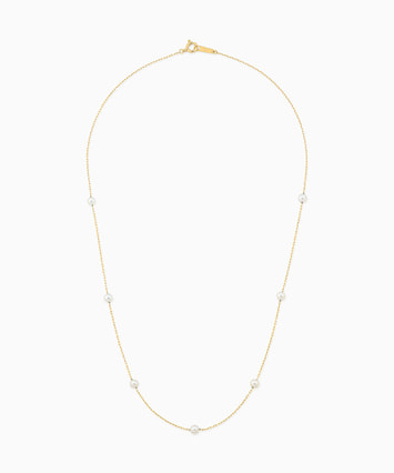 「幸せを運ぶ」と言われるスズランをイメージしたシリーズ。淡水パールが等間隔であしらわれたステーションのネックレス。上品で愛らしいパールの輝きがデコルテを彩り、どの角度から見ても美しい胸元を演出します。一本で身に着けても他のネックレスと重ね着けしても楽しめるアイテムです。■長さの調節ができるアジャスターはこちら※天然石を使用しているため、ストーンの色や柄は一つ一つ異なる場合がございます。※全国のフェスタリア系列店舗にてクリーニングやアフターメンテナンスを承ります。