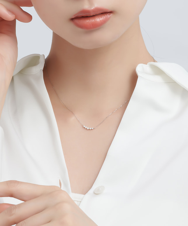 極小サイズの爪が上質なダイヤモンドの輝きを引き出し、デコルテに上品な華やかさを与えます。