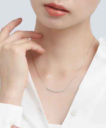 極小サイズの爪が上質なダイヤモンドの輝きを引き出し、デコルテに上品な華やかさを与えます。