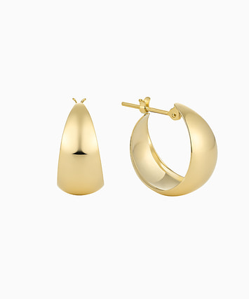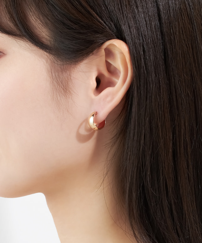 シーンを選ばず身に着けられる、シンプルなフープピアス。ふっくらとした曲線を描く月甲丸型で、軽やかな着け心地ながら存在感も放ちます。イエローゴールドの光沢感が顔周りを上品に演出。デイリーコーデにもオフィススタイルにも活躍するアイテムです。幅と直径の違いにより、お好みのサイズを3種類からお選びいただけます。■フープピアスのラインナップはこちら■様々なタイプのキャッチをご用意しております。ラインナップはこちら※全国のフェスタリア系列店舗にてクリーニングやアフターメンテナンスを承ります。