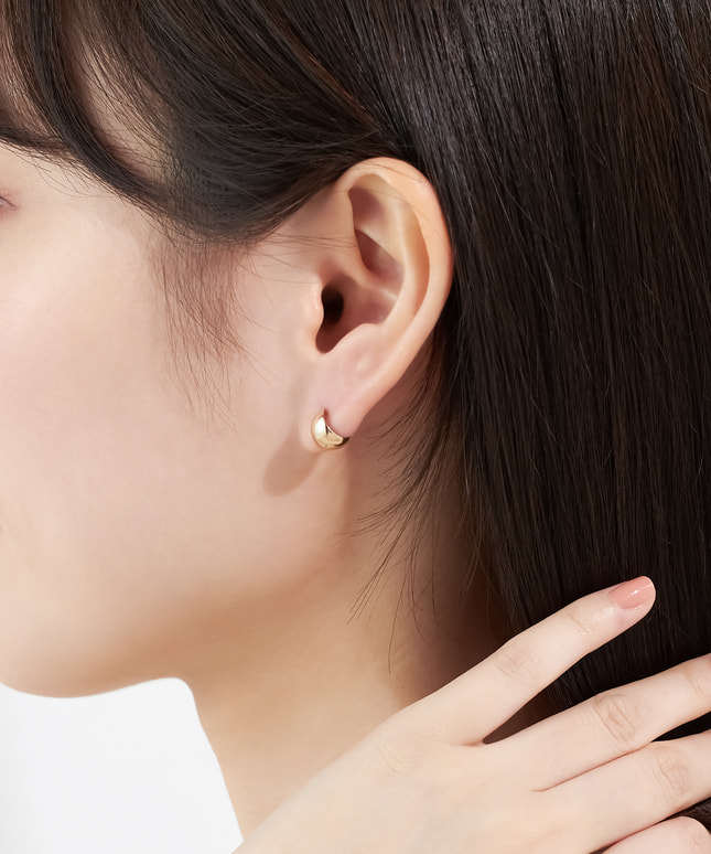シーンを選ばず身に着けられる、シンプルなフープピアス。