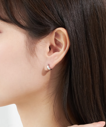 シーンを選ばず身に着けられる、シンプルなフープピアス。