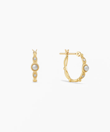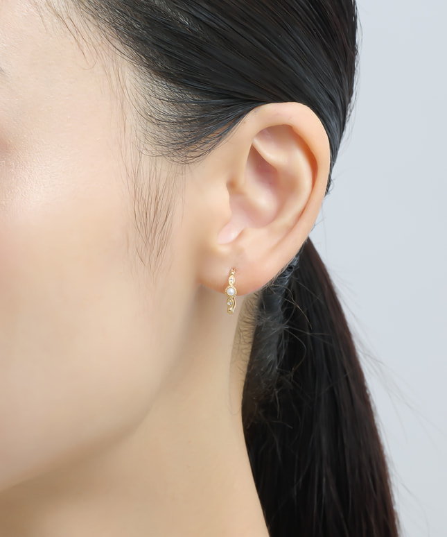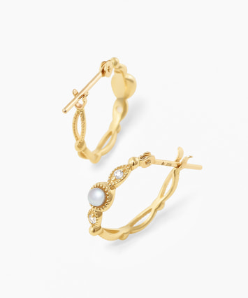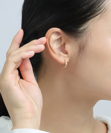 繊細なミル打ちが施されたフープに、淡水パールのやわらかな光沢を添えたピアス。優しく上品な艶めきが、耳元に清楚な印象と華やぎをもたらします。小さな粒の装飾が光を繊細に反射し、動くたびに表情豊かにきらめくデザイン。シンプルながらも上質感のあるデザインで、デイリーにも特別な日にもぴったり。■フープピアスのラインナップはこちら■様々なタイプのキャッチをご用意しております。ラインナップはこちら※全国のフェスタリア系列店舗にてクリーニングやアフターメンテナンスを承ります。