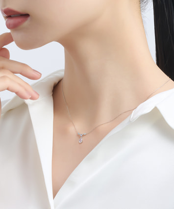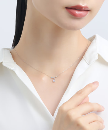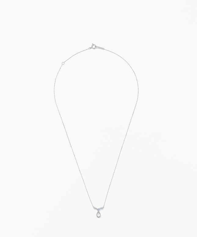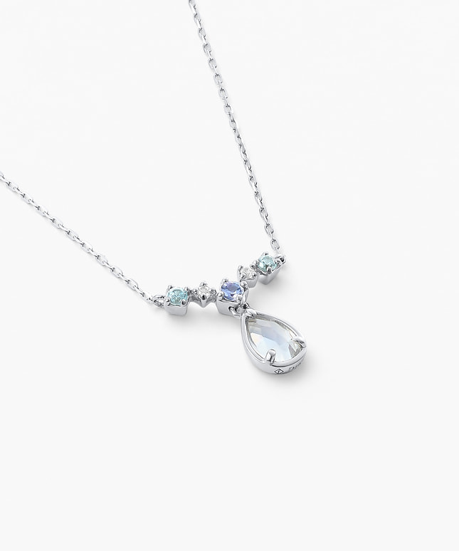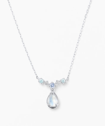 月の光を受けてほのかにきらめくしずくを、ブルームーンストーンと優しいブルーのグラデーションカラーで表現したネックレス。