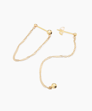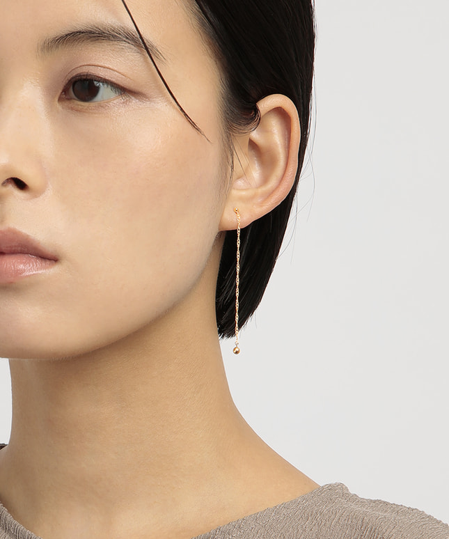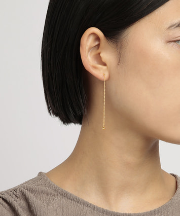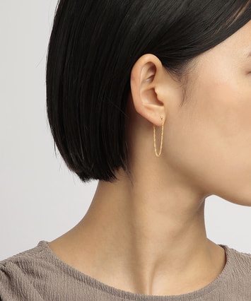カッティングや流れるラインの美しさにこだわり、地金チェーンやパーツを組み合わせたシリーズ。光を取り込み輝く美しいスクリューチェーンを使用し、揺れ動ききらめくデザインが特徴的です。先端のボールパーツをポストに付けることで、フープのフォルムとしても身に着けられるのも嬉しいポイント。■同シリーズのアイテムはこちら■様々なタイプのキャッチをご用意しております。ラインナップはこちら※全国のフェスタリア系列店舗にてクリーニングやアフターメンテナンスを承ります。