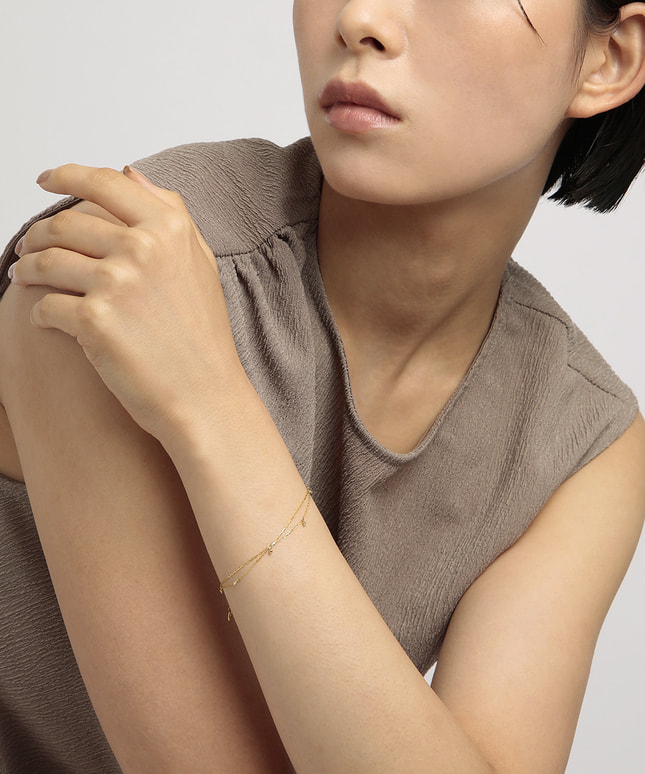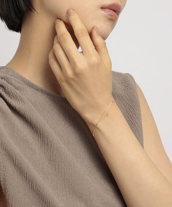 カッティングや流れるラインの美しさにこだわり、地金チェーンやパーツを組み合わせたシリーズ。光を取り込み輝く美しいミラーカット小豆チェーンを使用し、揺れ動ききらめくデザインが特徴的です。一本で重ね着けをしているようなリュクスな印象を演出。■同シリーズのアイテムはこちら※全国のフェスタリア系列店舗にてクリーニングやアフターメンテナンスを承ります。