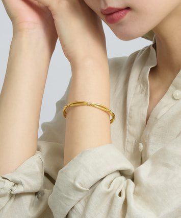 バングルの存在感が、よりいっそう華やかさをプラス。