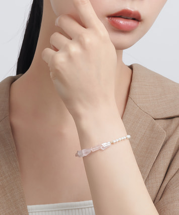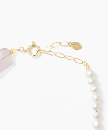 鮮やかなカラーストーンを贅沢にあしらった、夏仕様のジュエリーコレクション。淡いピンクが魅力のローズクォーツと、ほんのりきらめく淡水パールをあしらった、夏に映えるブレスレット。カラーストーンのやわらかな発色と、パールの上品な光沢が調和し、涼やかで洗練された印象を与えてくれます。軽やかな装いが増える季節に、さりげなくアクセントとしておすすめ。同シリーズでの重ね着けや、お手持ちのジュエリーとのコーディネートも楽しめ、多彩なスタイリングが可能です。■同シリーズのアイテムはこちら■長さの調節ができるアジャスターはこちら※天然石を使用しているため、ストーンの色合いは一つ一つ異なる場合がございます。※全国のフェスタリア系列店舗にてクリーニングやアフターメンテナンスを承ります。