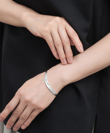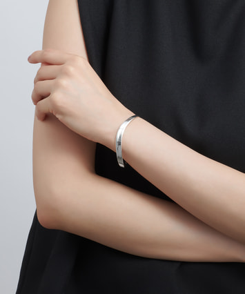 【ONLINE限定】スタイリッシュな佇まいが目を引く、シルバーバングル。しなやかなラインに洗練された曲線を効かせた、流れるようなフォルムが上品なムードに。艶やかなシルバーの輝きが、洗練されたムードを演出し、シンプルなスタイルに印象的なアクセントを添えます。凛とした強さを感じさせる佇まいで、コーディネートをぐっと引き締めてくれます。デイリーにもオフィスカジュアルにも活躍する万能アイテムです。■同シリーズのアイテムはこちら※全国のフェスタリア系列店舗にてクリーニングやアフターメンテナンスを承ります。