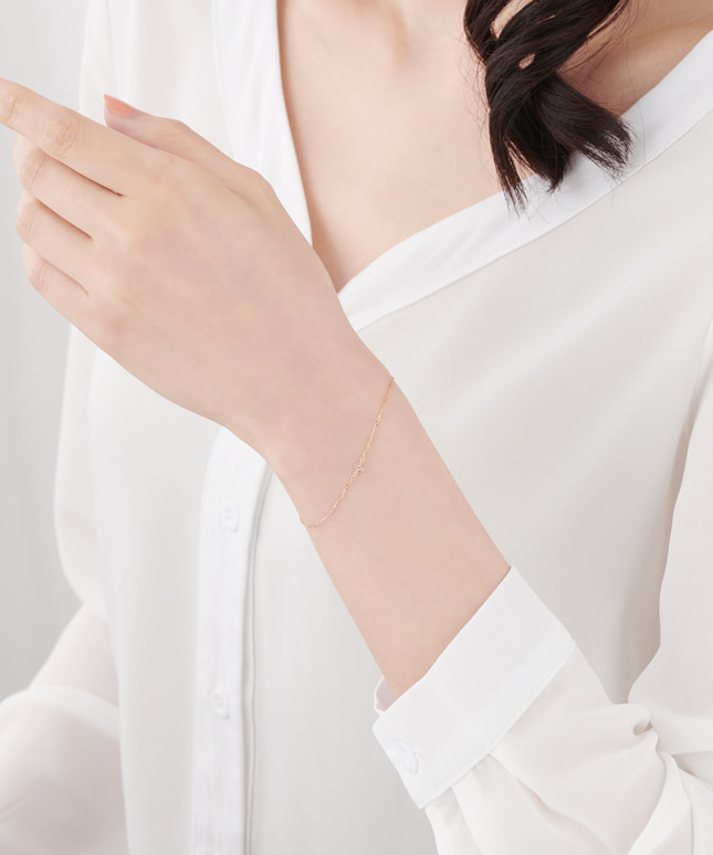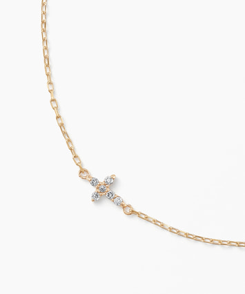 Basic closet ベーシッククローゼット洋服をクローゼットから選ぶように、その日の気分や装いに合わせてジュエリーを選ぶクローゼットシリーズ。光を受けてキラキラと輝くK10イエローゴールドのチェーンとダイヤモンドが、華奢なシルエットながらも存在感を放つブレスレット。災いから身を守ってくれる「守護」のモチーフであるクロスをさり気なくあしらったデザインです。3cmのアジャスター付きなので、お好みの長さに調節してお着けいただけます。■長さの調節ができるアジャスターはこちら※全国のフェスタリア系列店舗にてクリーニングやアフターメンテナンスを承ります。
