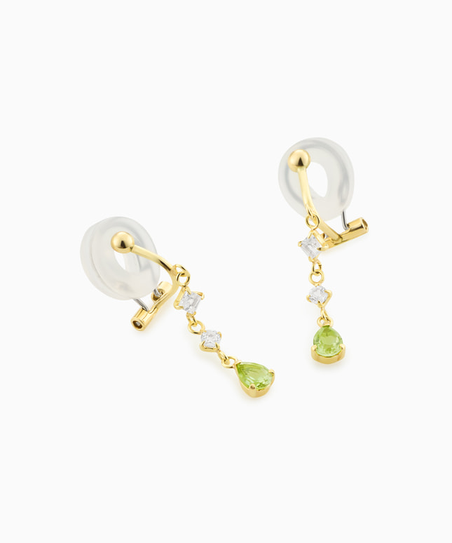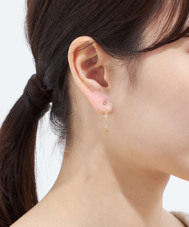 洋服をクローゼットから選ぶように、その日の気分や装いに合わせてイヤーアイテムを選ぶ…そんな楽しみが詰まったシリーズです。シリコン付きのステンレスバネで留めるクリップタイプのイヤリング。鮮やかなペリドットとクリアなホワイトトパーズが耳元で揺れ、横顔を華やかに演出します。正面から金具が見えにくいデザインで、シリコン付きなので落としにくく痛くなりにくいのも嬉しいポイント。日々のコーディネートに彩りを添えるアクセントとなるアイテムです。■着用イメージでコーディネートしたアイテムはこちら※天然石を使用しているため、ストーンの色合いは一つ一つ異なる場合がございます。※全国のフェスタリア系列店舗にてクリーニングやアフターメンテナンスを承ります。#揺れるイヤリング #イヤリング クリップタイプ #ギフトにおすすめ #8月誕生石