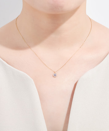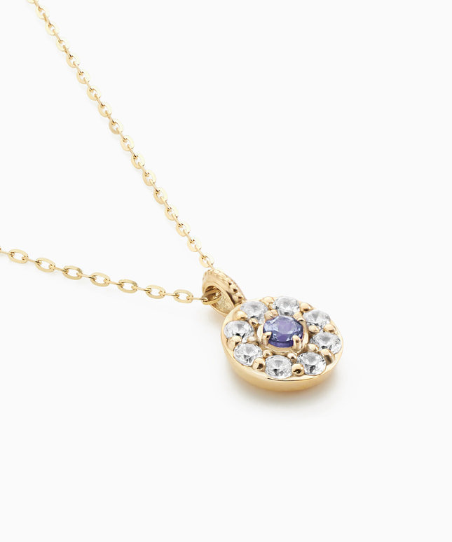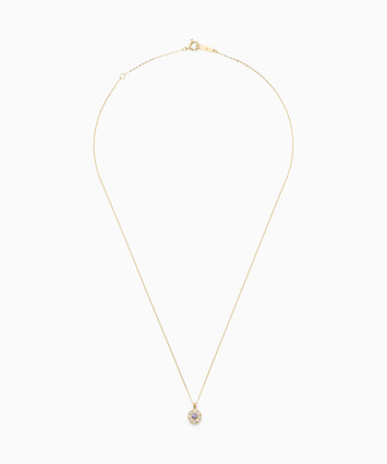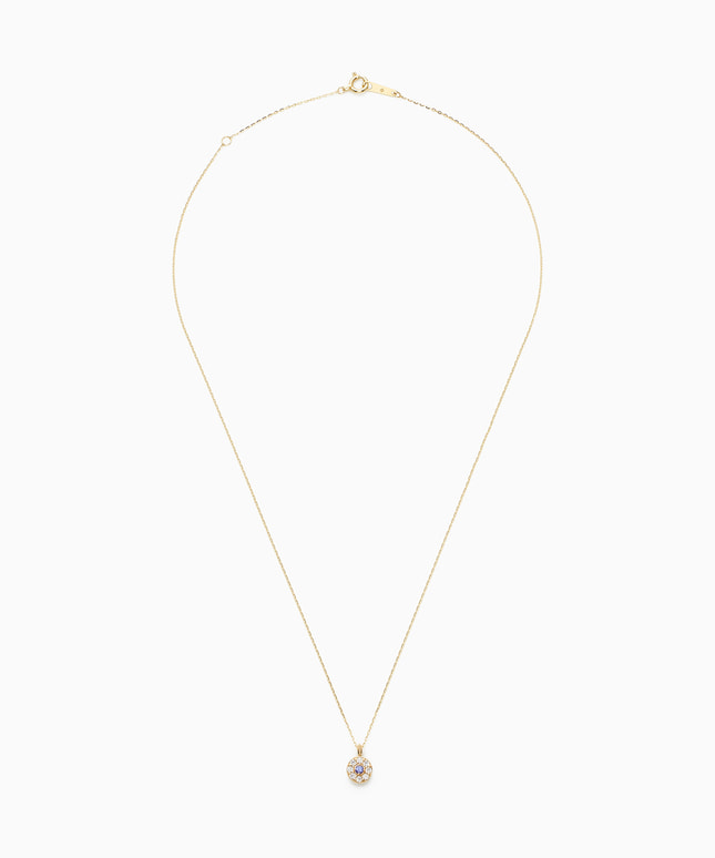 センターのタンザナイトを包み込むようにキュービックジルコニアがセッティングされた華やかなデザインのネックレス。