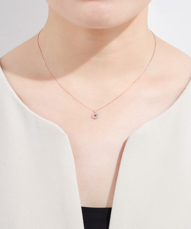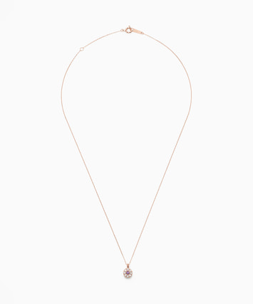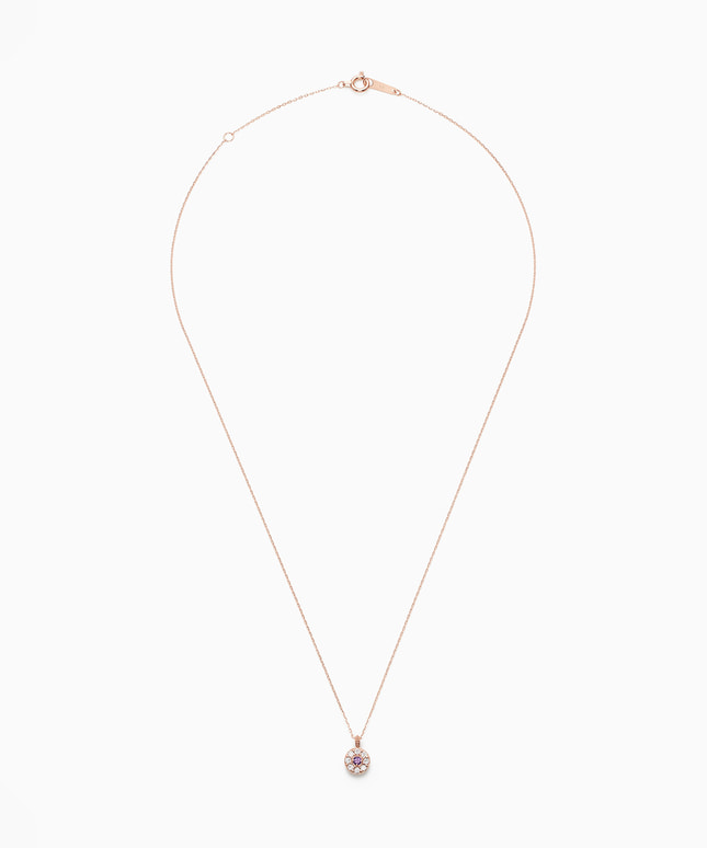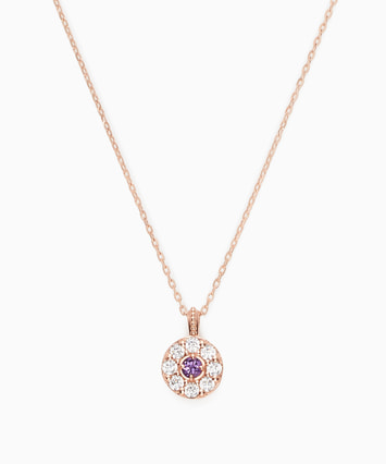 センターのアメシストを包み込むようにキュービックジルコニアがセッティングされた華やかなデザインのネックレス。