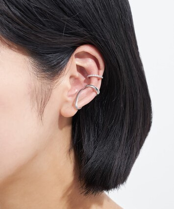 Ear closet イヤークローゼット洋服をクローゼットから選ぶように、その日の気分や装いに合わせてピアスやイヤリングを選ぶクローゼットシリーズ。コーディネートにスパイスを与えてくれる様々なイヤーカフ。シンプルでモダンなイヤーカフにキュービックをあしらい、輝きをプラス。耳の下のほうに着けることで、まるでフープピアスを着けているかのように見えます。さまざまなデザインのピアスとも相性がいいので、レイヤードスタイルを楽しむことができます。軽い着け心地で、イヤーカフは初めてという方にもおすすめ。またニッケルフリー素材なのでアレルギーが出にくいことも嬉しいポイントです。※片方のみの販売