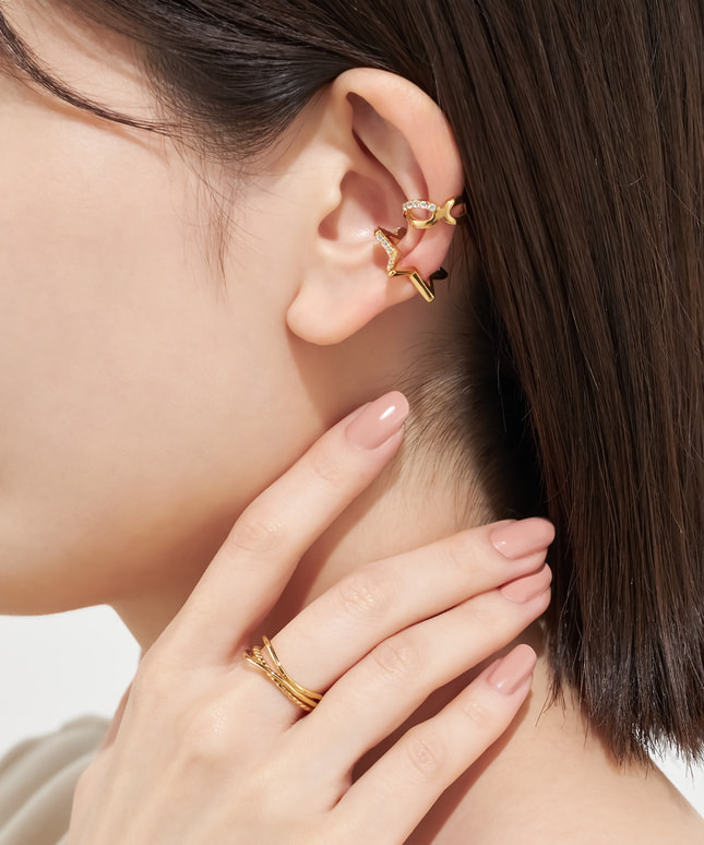 洋服をクローゼットから選ぶように、その日の気分や装いに合わせてピアスやイヤリングを選ぶ…そんな想いが込められたシリーズ。コーディネートにスパイスを与えてくれる様々なイヤーカフ。星モチーフが横顔をキュートに演出しつつ、側面にあしらわれたキュービックジルコニアが程よいきらめきもプラスします。デイリーコーディネートのアクセントになるアイテムです。ニッケルフリー素材なので、アレルギーが出にくいことも嬉しいポイントです。※全国のフェスタリア系列店舗にてクリーニングやアフターメンテナンスを承ります。#イヤーカフ シルバー #1万円以内 プレゼント #星モチーフ