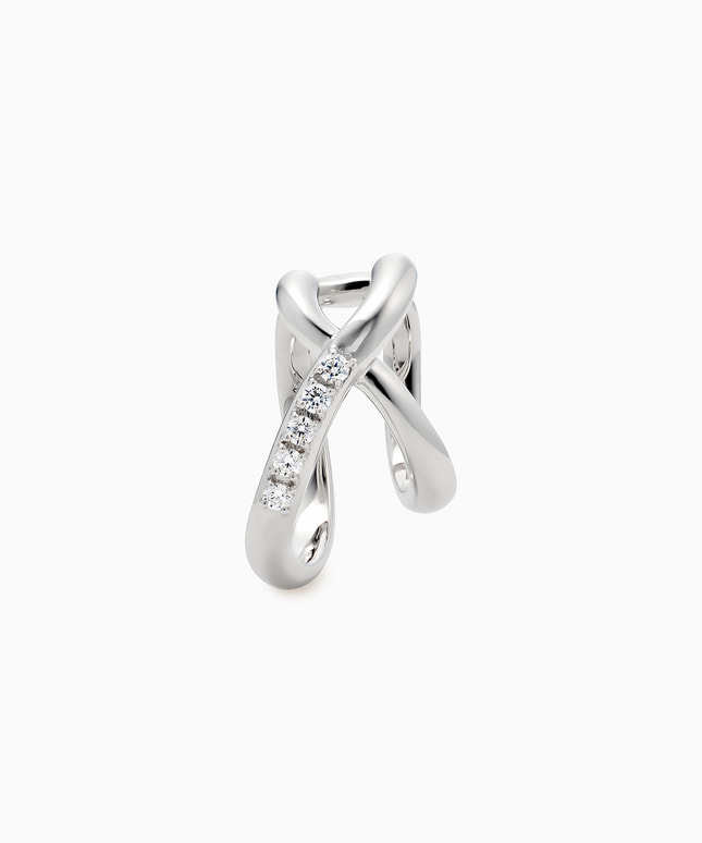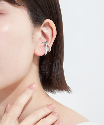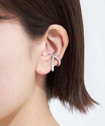 Ear closet "caff" イヤークローゼット カフ洋服をクローゼットから選ぶように、その日の気分や装いに合わせてピアスやイヤリングを選ぶ…そんな楽しみが詰まったクローゼットシリーズ。見た目のボリューム感からは想像できないような軽い着け心地のイヤーカフは、コーディネートにスパイスを与えてくれるアイテム。交差するなめらかな曲線とキュービックジルコニアのきらめきが、耳元で存在感を放ちます。通常よりも厚みがあるコーティングのため変色しにくく、ニッケルフリー素材なのでアレルギーが出にくいことも嬉しいポイントです。※変形・変色を防ぐため、水に触れる際や就寝時には外してください。※全国のフェスタリア系列店舗にてクリーニングやアフターメンテナンスを承ります。