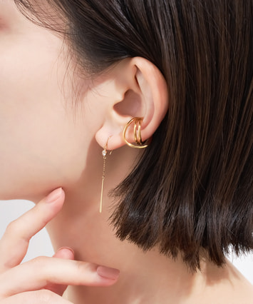 洋服をクローゼットから選ぶように、その日の気分や装いに合わせてイヤーアイテムを選ぶ…そんな楽しみが詰まったシリーズです。ランダムな曲線を幾重にも重ねたデザインは、ボリュームがありながらも主張しすぎず、耳元で程よいアクセントに。着ける耳や向きによって表情が変わるだけでなく、ピンキーリングとして身に着けることも可能。通常よりも厚みがあるコーティングのため変色しにくく、ニッケルフリー素材なのでアレルギーが出にくいことも嬉しいポイントです。■着用イメージでコーディネートしたアイテムはこちら※リングとしてのサイズは約1号~3号です。※変形・変色を防ぐため、水に触れる際や就寝時には外してください。※割れる原因となるので、リングサイズを大きくするために開口部を開かないでください。※全国のフェスタリア系列店舗にてクリーニングやアフターメンテナンスを承ります。