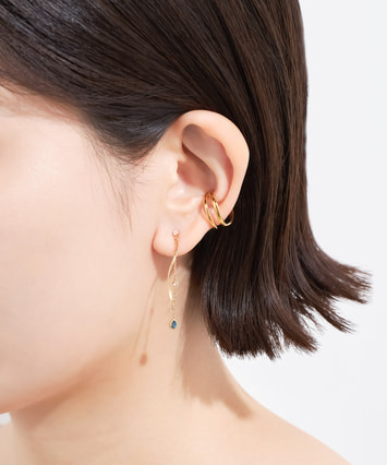 洋服をクローゼットから選ぶように、その日の気分や装いに合わせてイヤーアイテムを選ぶ…そんな楽しみが詰まったシリーズです。動きのある曲線を重ねたデザインは、ボリュームがありながらも主張しすぎず、耳元で程よいアクセントに。着ける耳や向きによって表情が変わるだけでなく、ピンキーリングとして身に着けることも可能。通常よりも厚みがあるコーティングのため変色しにくく、ニッケルフリー素材なのでアレルギーが出にくいことも嬉しいポイントです。■着用イメージでコーディネートしたアイテムはこちら※リングとしてのサイズは約1号~3号です。※変形・変色を防ぐため、水に触れる際や就寝時には外してください。※割れる原因となるので、リングサイズを大きくするために開口部を開かないでください。※全国のフェスタリア系列店舗にてクリーニングやアフターメンテナンスを承ります。