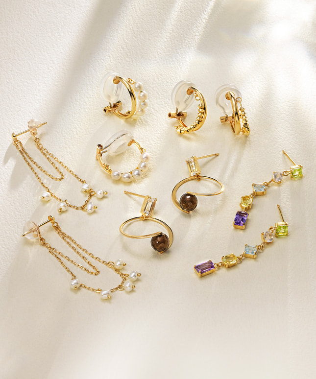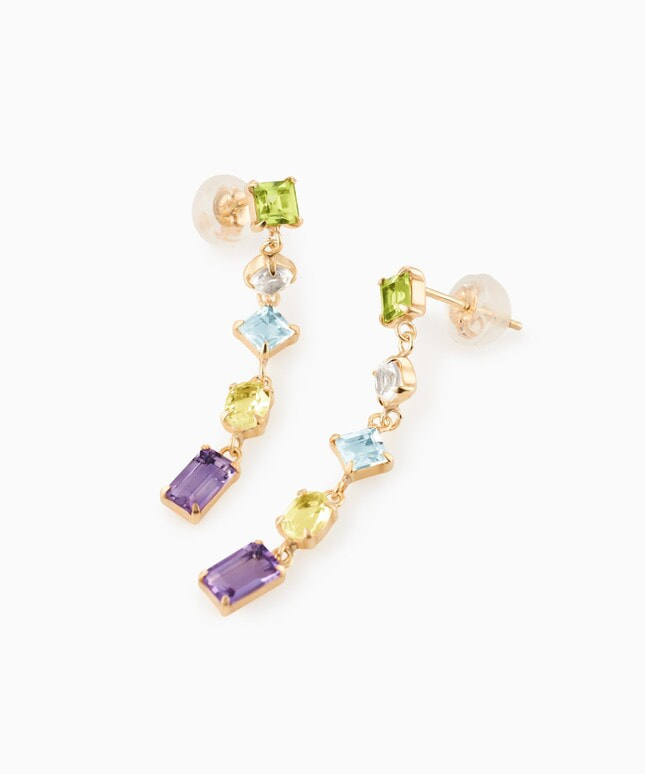 洋服をクローゼットから選ぶように、その日の気分や装いに合わせてイヤーアイテムを選ぶ…そんな楽しみが詰まったシリーズです。色とりどりのカラーストーンが目を引くピアス。色もシェイプも異なるの遊び心あるデザインは、身に着けると気持ちも明るくしてくれそうです。■着用イメージでコーディネートしたアイテムはこちら※天然石を使用しているため、ストーンの色や柄は一つ一つ異なる場合がございます。■様々なタイプのキャッチをご用意しております。ラインナップはこちら※全国のフェスタリア系列店舗にてクリーニングやアフターメンテナンスを承ります。