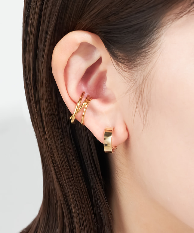 洋服をクローゼットから選ぶように、その日の気分や装いに合わせてイヤーアイテムを選ぶ…そんな楽しみが詰まったシリーズ。シリコン付きのステンレスバネで留めるクリップタイプのイヤリング。幅があり均一な平打ちのフープデザインです。シリコン付きなので落としにくく痛くなりにくいのも嬉しいポイント。イヤーカフとしても使用できるので、ピアスなど他のアイテムとのコーディネートも楽しめます。■着用イメージでコーディネートしたアイテムはこちら→イヤーカフ/ピアス※全国のフェスタリア系列店舗にてクリーニングやアフターメンテナンスを承ります。