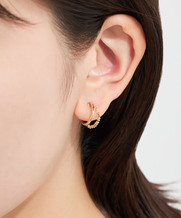 洋服をクローゼットから選ぶように、その日の気分や装いに合わせてイヤーアイテムを選ぶ…そんな楽しみが詰まったシリーズです。シリコン付きのステンレスバネで留めるクリップタイプのイヤリング。正面から金具が見えにくいフープデザインで、シリコン付きなので落としにくく痛くなりにくいのも嬉しいポイント。イヤーカフとしても使用できるので、ピアスなど他のアイテムとのコーディネートも楽しめます。■着用イメージでコーディネートしたアイテムはこちら→淡水パールピアス/カラーストーンピアス※全国のフェスタリア系列店舗にてクリーニングやアフターメンテナンスを承ります。