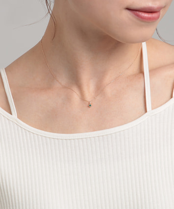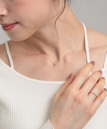 ダイヤモンドが繊細なきらめきを添え、デコルテに爽やかなアクセントを与えます。