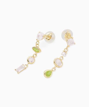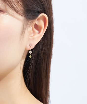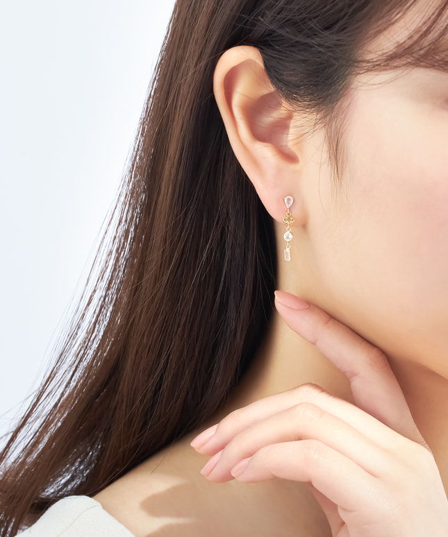 洋服をクローゼットから選ぶように、その日の気分や装いに合わせてイヤーアイテムを選ぶ…そんな楽しみが詰まったシリーズです。カット・カラーの異なるストーンをランダムに配置した、柔らかな色合いのピアス。フェミニンなコーディネートに合わせやすい配色でありながら、遊び心も感じるアシンメトリーなデザインが、横顔を印象的に彩ります。両耳セットで身に着けるのはもちろん、他のピアスやイヤーカフとコーディネートして、片方ずつでもお楽しみいただけるアイテムです。※天然石を使用しているため、ストーンの色や柄は一つ一つ異なる場合がございます。■様々なタイプのキャッチをご用意しております。ラインナップはこちら※全国のフェスタリア系列店舗にてクリーニングやアフターメンテナンスを承ります。#揺れるピアス #ローズクォーツ #8月誕生石 #アシンメトリーピアス #3万円予算 ピアス #2万円台 ピアス