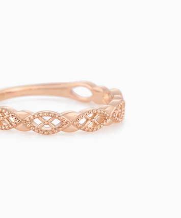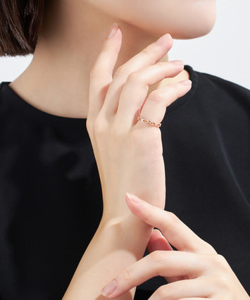 自分らしさをリングに込め、日々を楽しむ人のためのピンキーリングシリーズ。レースのように連なるミルグレインのデザインが、手元にフェミニンなムードをプラスします。お守りジュエリーとして人気の高いピンキーリングは、願い事を成就させたいときは左手に、好感度をUPさせたいときは右手に着けるとGOOD。1本でも満足感がありながら、繊細でシンプルなデザインなので、お持ちのジュエリーと合わせてファッションのバリエーションを広げてくれるアイテムです。