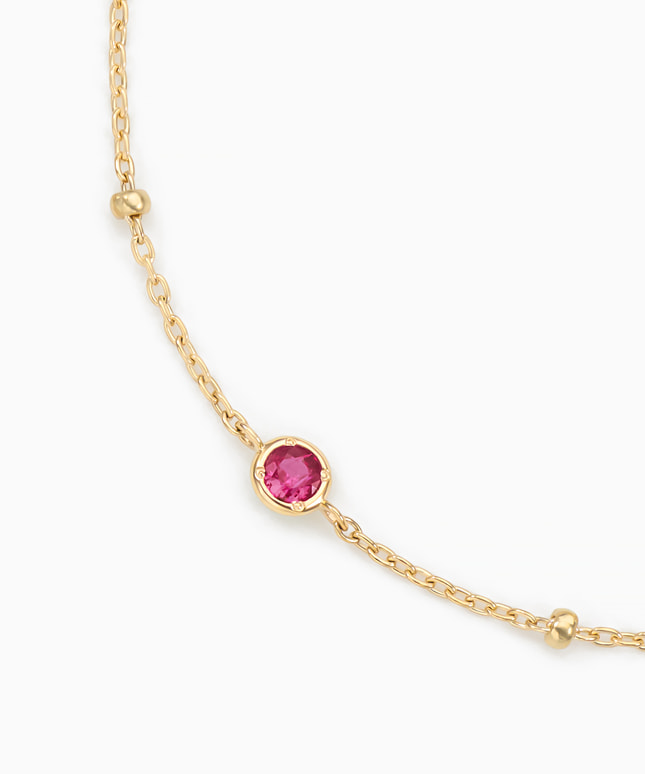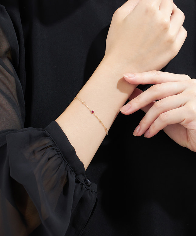 洋服をクローゼットから選ぶように、その日の気分や装いに合わせてブレスレットを選ぶ…そんな楽しみが詰まったシリーズです。ゴールドのチェーンに鮮やかなルビーがアクセントになるブレスレット。チェーンにもメタルパーツが配置され、どの角度から見ても美しいデザインです。1本で着けるのはもちろん、他のブレスレットや時計との重ね着けもおすすめです。■長さの調節ができるアジャスターはこちら※天然石を使用しているため、ストーンの色や柄は一つ一つ異なる場合がございます。※全国のフェスタリア系列店舗にてクリーニングやアフターメンテナンスを承ります。#ブレスレット イエローゴールド #7月誕生石 ルビー #ギフトにおすすめ