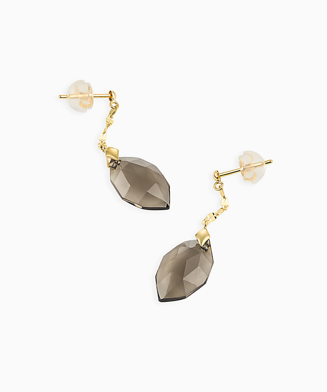クールな印象を持つスモーキークォーツがゆらゆらと揺れるチェーンピアス。落ち着いたブラウンカラーのスモーキークォーツとペタルチェーンの輝きが高級感のある穏やかな印象へ。マーキース型の石の結合部分には、ひし形にデザインされた地金を使用し、よりシャープで大人らしい雰囲気を演出しています。スモーキークォーツの石言葉:「安定」「癒やし」「責任感」■様々なタイプのキャッチをご用意しております。ラインナップはこちら※天然石を使用しているため、ストーンの色合いは一つ一つ異なる場合がございます。※全国のフェスタリア系列店舗にてクリーニングやアフターメンテナンスを承ります。