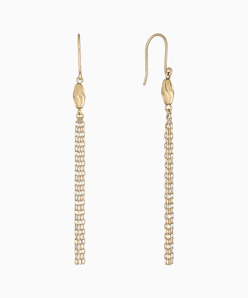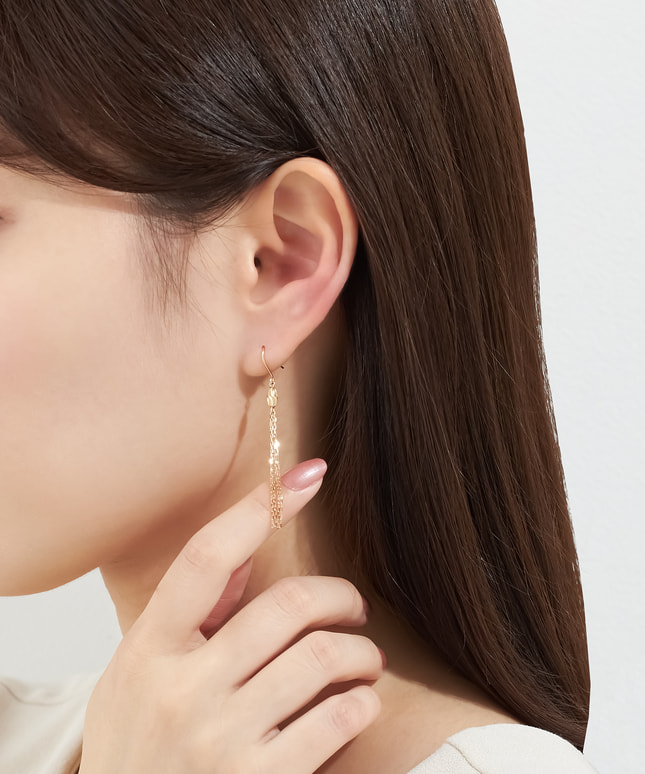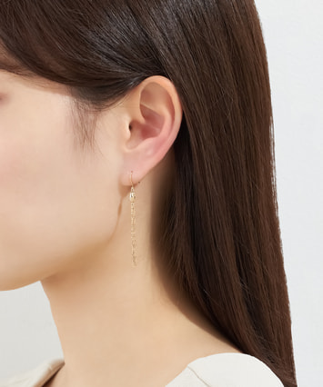 繊細なチェーンが流れるように連なり、動きに合わせて揺れきらめくフリンジピアス。軽やかでエレガントな雰囲気を演出し、顔まわりを華やかに彩ります。シンプルなコーディネートにプラスするだけで、上品な華やかさを添えてくれるアイテムです。華奢ながらも存在感があり、ドレスアップスタイルにも相性抜群。パーティーや特別な日にも、日常使いにも取り入れやすい万能さが魅力です。■メタルジュエリーはこちら■様々なタイプのキャッチをご用意しております。ラインナップはこちら※全国のフェスタリア系列店舗にてクリーニングやアフターメンテナンスを承ります。