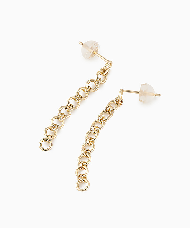 存在感のあるチェーンモチーフを取り入れたトレンド感あふれるデザイン。しっかりとしたボリュームがありながらも、地金の輝きが上品さをプラスします。カジュアルスタイルのアクセントとしてはもちろん、モードな装いにもぴったりのアイテムです。シンプルな装いに合わせるだけで、一気に旬の雰囲気に。存在感がありつつも重たすぎないので、デイリーに取り入れやすいのも魅力です。■メタルジュエリーはこちら■様々なタイプのキャッチをご用意しております。ラインナップはこちら※全国のフェスタリア系列店舗にてクリーニングやアフターメンテナンスを承ります。