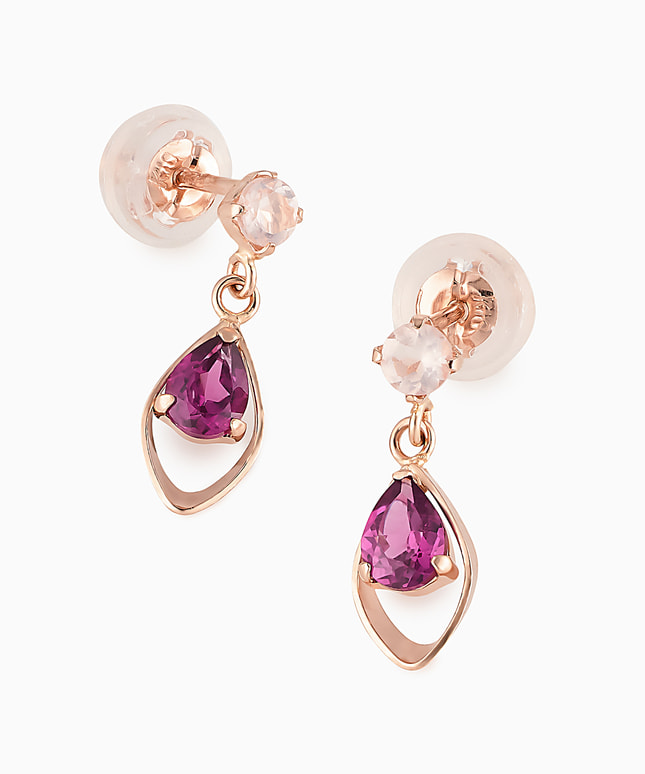 鮮やかなロードライトガーネットを、ピンクゴールドのフレームに組み合わせたデザイン。華やかでロマンティックな雰囲気を纏い、女性らしさを引き立てます。ストーンの輝きが耳元で揺れ、エレガントな印象を与えます。肌なじみの良いローズカラーで、普段使いにも取り入れやすいのが魅力。デートや特別なシーンにもぴったりの華やかさ。大人の可愛らしさを叶えるピアスです■同シリーズのアイテムはこちら■様々なタイプのキャッチをご用意しております。ラインナップはこちら※天然石を使用しているため、ストーンの色合いは一つ一つ異なる場合がございます。※全国のフェスタリア系列店舗にてクリーニングやアフターメンテナンスを承ります。