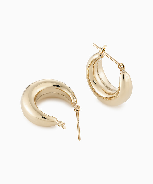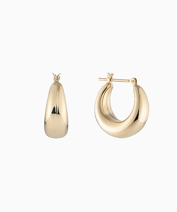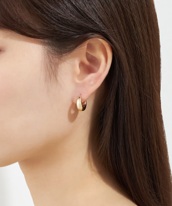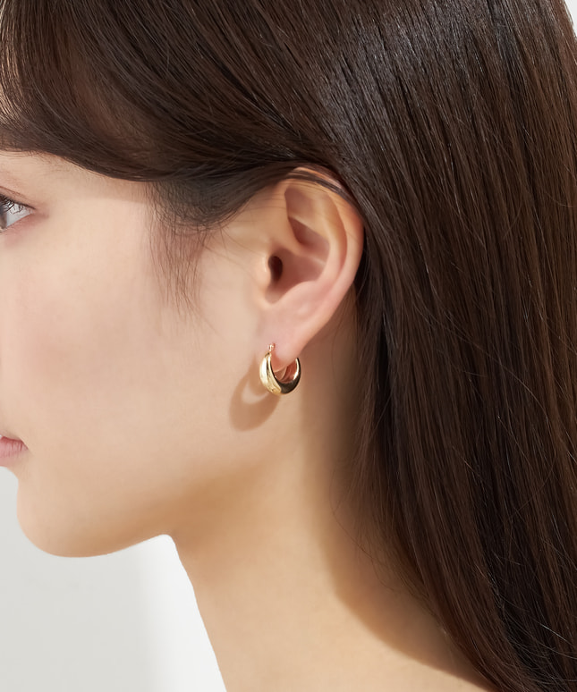 ほどよいサイズ感のゴールドフープが、上品に輝くデザイン。シンプルながらも立体感があり、耳元をスタイリッシュに演出します。装いを選ばず合わせやすく、デイリーに重宝する万能アイテム。丸みを帯びたフォルムが柔らかい印象をプラス。ひとつで主役にも、重ね付けのベースとしても活躍。タイムレスに愛せる定番ピアスです。二種類のサイズからお選びいただけます。■フープピアスのラインナップはこちら■様々なタイプのキャッチをご用意しております。ラインナップはこちら※全国のフェスタリア系列店舗にてクリーニングやアフターメンテナンスを承ります。