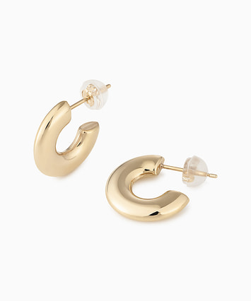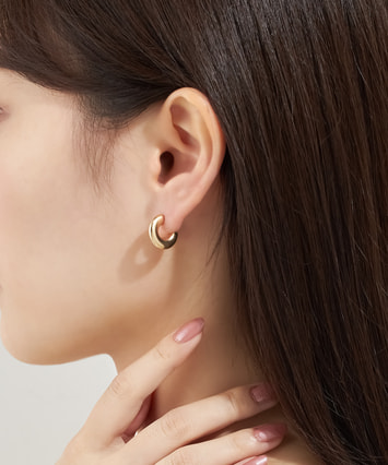 厚みのあるフォルムが存在感を放つ、ボリュームピアス。ゴールドの艶やかな輝きが、顔まわりを華やかに照らします。シンプルながらモード感があり、コーディネートを洗練された印象に。ひとつ着けるだけで、スタイルにトレンド感をプラスできます。軽やかな着け心地で、デイリーにも使いやすい仕上がり。永く愛用できる定番ジュエリーです。■フープピアスのラインナップはこちら■様々なタイプのキャッチをご用意しております。ラインナップはこちら※全国のフェスタリア系列店舗にてクリーニングやアフターメンテナンスを承ります。