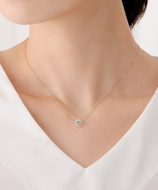 bocciolo ボッチョーロイタリア語で「つぼみ」という意味の「bocciolo(ボッチョーロ)」。みずみずしい水色が印象的なアクアマリンをダイヤモンドの煌めきでつつみこみ、デコルテを上品さをプラス。ラウンドにカットされたカラーストーンは珍しく、コロンとしたフォルムは幅広い層に愛されるデザインです。■長さの調節ができるアジャスターはこちら※天然石を使用しているため、ストーンの色や柄は一つ一つ異なる場合がございます。