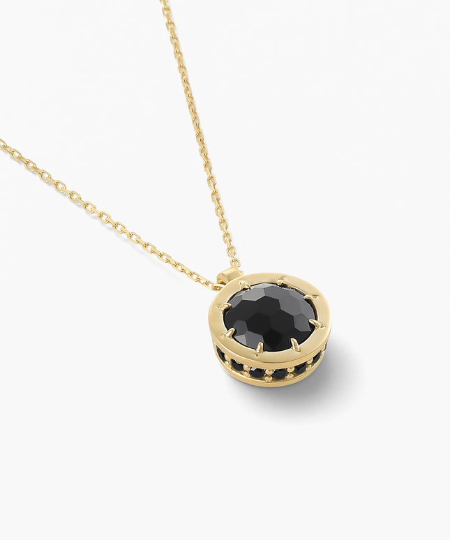 ■デザインについて たくさんの人が集まる宴のポジティブなエネルギーをイメージして創られたネックレスです。 大切な人とのつながりで生まれる温かさや始まりや区切りを祝う身の引き締まる気持ちをいつも心に、という想いを込めました。 シンプルなデザインながらも、側面には地金の色に合わせた16個のダイヤモンドをあしらい、華やかさを演出。 メインストーンのオニキスは、マイナスの感情を振り払い、落ち着きを与えてくれると言われています。 地金のイエローゴールドとの組み合わせにより、艶めいたブラックカラーが際立ちます。 ■スタッフのおすすめポイント ・オニキスは魔除けや厄除けとしても知られ、お守りジュエリーとしておすすめ。 ・正面は落ち着いた印象、斜めから見ると華やかさが引き立ち、角度によって表情が変わるデザイン。 ・同じシリーズのリングともコーディネートを楽しむことができます。 ■カラー・素材の展開 メインストーンは8種類を展開。 こちらのオニキスの枠とチェーンには14Kのイエローゴールドを使用しています。 ■同シリーズのアイテムはこちら