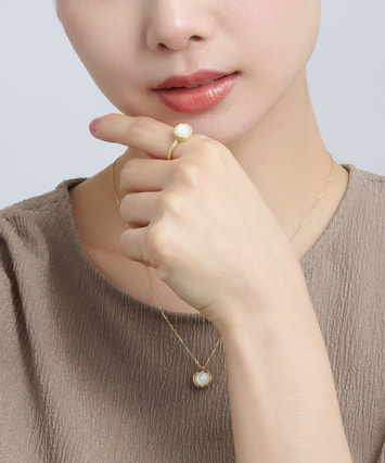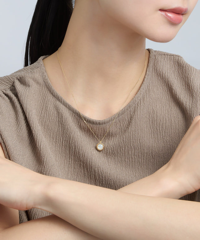 ■デザインについて たくさんの人が集まる宴のポジティブなエネルギーをイメージして創られたネックレスです。 大切な人とのつながりで生まれる温かさや始まりや区切りを祝う身の引き締まる気持ちをいつも心に、という想いを込めました。 シンプルなデザインながらも、側面には地金の色に合わせた16個のダイヤモンドをあしらい、華やかさを演出。 メインストーンのシェルと地金のイエローゴールドは洗練された輝きを放ちます。 ■スタッフのおすすめポイント ・シェルの上品な色合いが胸元を華やかに彩ります。 ・どんなシーンでも身に着けられるのも嬉しいポイント ・キラキラと輝くダイヤモンドに心が躍り、日常にさりげなくきらめきをプラス ・同じシリーズのリングともコーディネートを楽しむことができます。 ■カラー・素材の展開 メインストーンは8種類を展開。 こちらのシェルの枠とチェーンには14Kのイエローゴールドを使用しています。 ■同シリーズのアイテムはこちら
