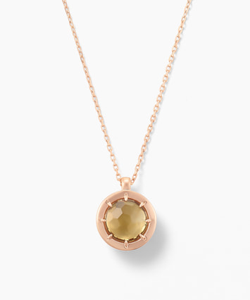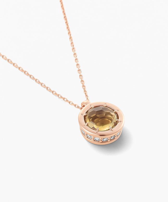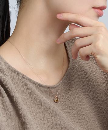 ■デザインについて たくさんの人が集まる宴のポジティブなエネルギーをイメージして創られたネックレスです。 一見シンプルなデザインですが、側面には16個もの天然ダイヤモンドが連なっており高級感が漂います。 メインストーンのシトリンは天然石のあたたかいオレンジ色で富や繁栄の象徴。 財をもたらすと言われていることから、金運アップのお守りジュエリーに最適です。 ■スタッフのおすすめポイント ・8種類のメインストーンの中から、ピンとくるジュエリーをぜひ見つけてみてください ・同じストーンのネックレスとリングでコーディネートしたり、ご自身のお気に入りの組み合わせを楽しむのもお洒落です。 ■カラー・素材の展開 メインストーンは8種類を展開。 こちらのシトリンの枠とチェーンには14Kのピンクゴールドを使用しています。 ■同シリーズのアイテムはこちら