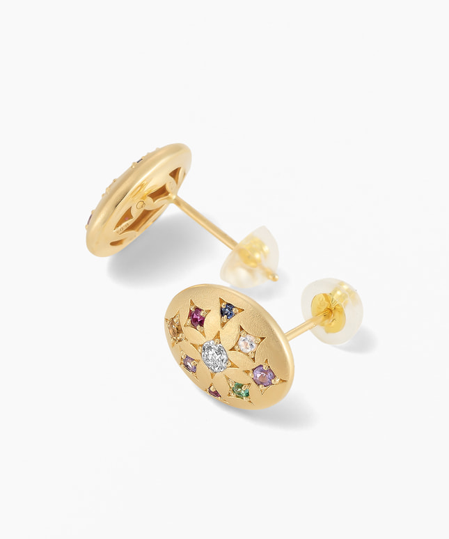 ヴェレッタ オッターヴァの人気シリーズから新登場。■デザインについて"Wish upon a star®"ダイヤモンドを中心に、彩り豊かなマルチカラーストーンをあしらったピアス。星々のきらめきが夜空に瞬くように、色と光が溶け合い、耳元に華やかなアクセントを添えます。■スタッフのおすすめポイント・色とりどりのストーンが顔まわりを明るく見せてくれます。・イエローゴールドの暖かい光が肌色になじみます。・ギフトにもおすすめのデザインです。■カラー・素材の展開同シリーズのアイテムはこちら■“Wish upon a star®” ダイヤモンドのアイテムはこちら→“Wish upon a star®” ダイヤモンドとは?■様々なタイプのキャッチをご用意しております。ラインナップはこちら※天然石を使用しているため、ストーンの色合いは一つ一つ異なる場合がございます。※全国のフェスタリア系列店舗にてクリーニングやアフターメンテナンスを承ります。