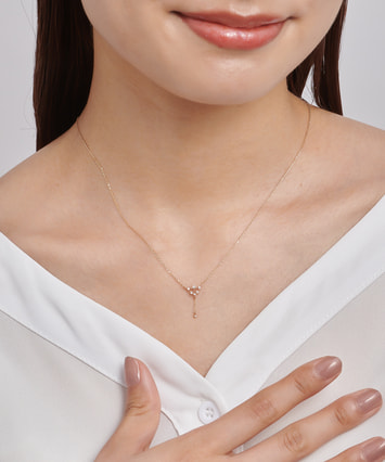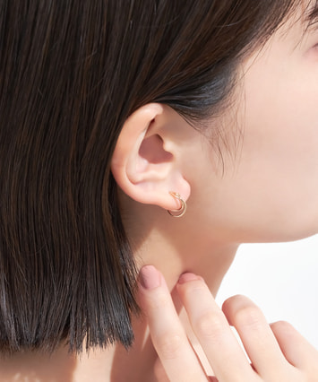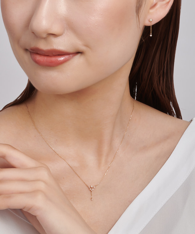 仕草にあわせてダイヤモンドが揺れる度、控えめながらも視線を集め、コーディネートを印象的に仕上げてくれます。